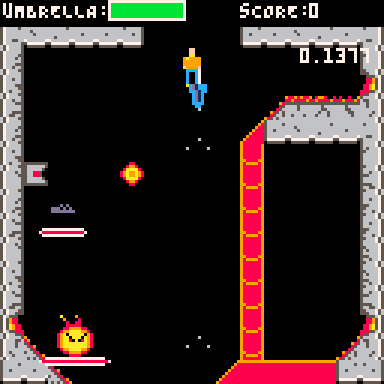 Today I worked on some start and end menus, which are very rough and will probably stay that way. I added some particle effects for the lava scene and some basic SFX. I also did some minor rework on some sprites.